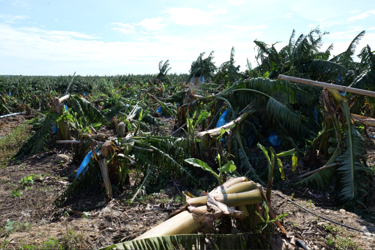 2025年第1号台风“蝴蝶”登陆海南东方市,香蕉产业损失严重。为助力受灾产业尽快恢复生产,6月17日,海南省科技厅许江副厅长带队,邀请中国热科院产业发展处周浩副处长、中国热科院生物所吴波副所长、国家香蕉产业技术体系儋州综合试验站魏守兴站长等专家,赴东方市板桥镇新园村开展科技救灾技术指导。